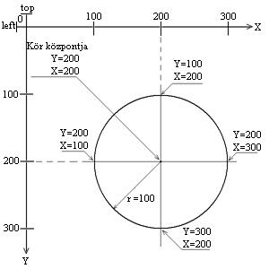 - Minden vonal kiindulási pontja megegyezik, y=100; x=300; Így a vonalak, egy adott pontból indulnak ki. Ha y vagy x értékét minden vonalnál, más és más értékre állítjuk, akkor a vonalak elkülönülnek egymástól.
